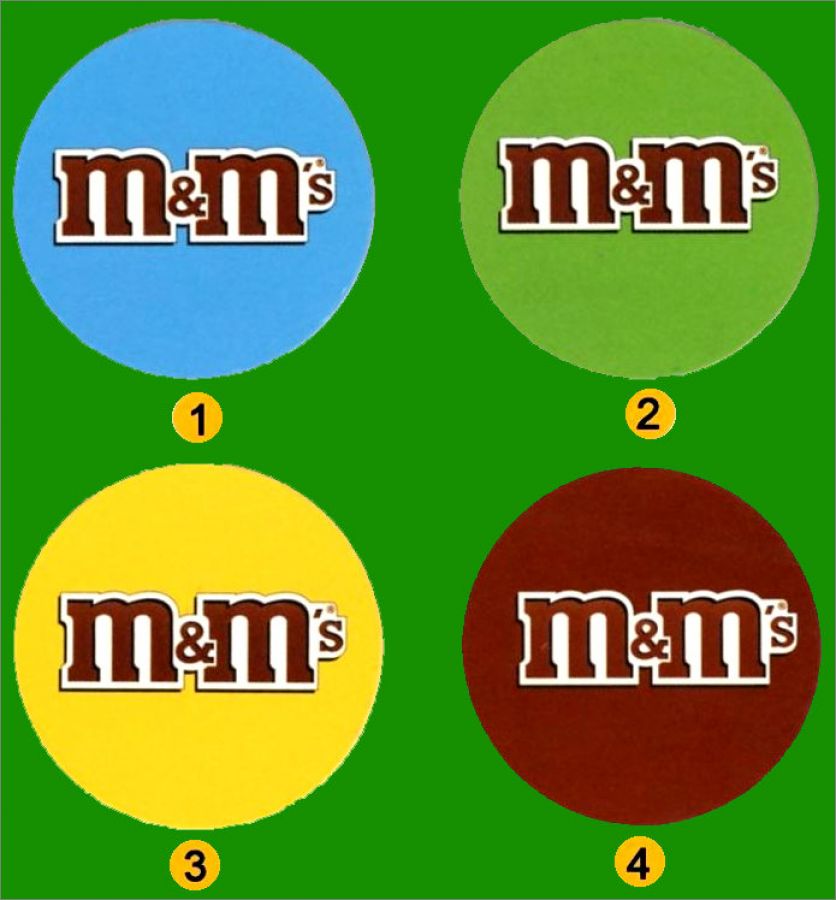 M&M's : 1 à 4 (suivre la numérotation sur l'image)