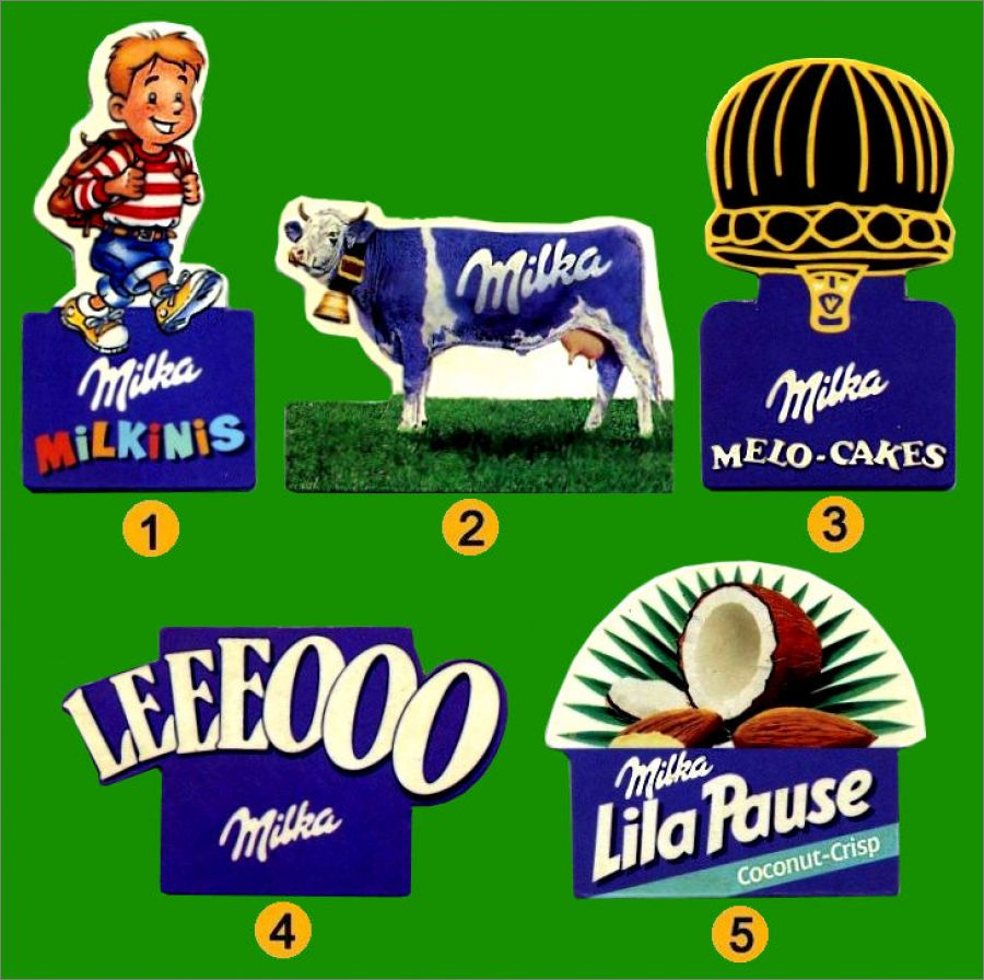 Milka : 1 à 5 (Suivre la numérotation sur l'image)