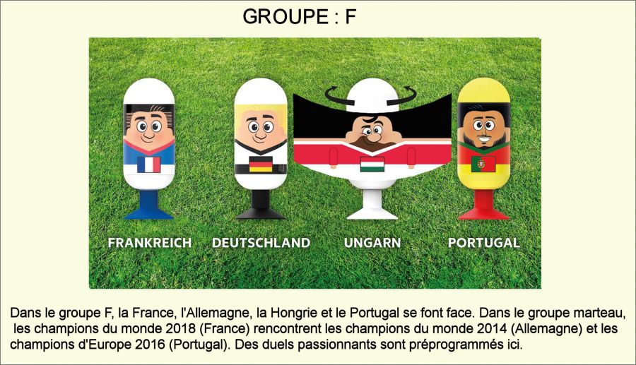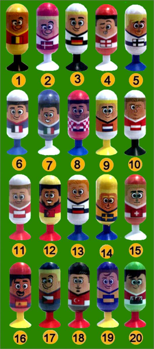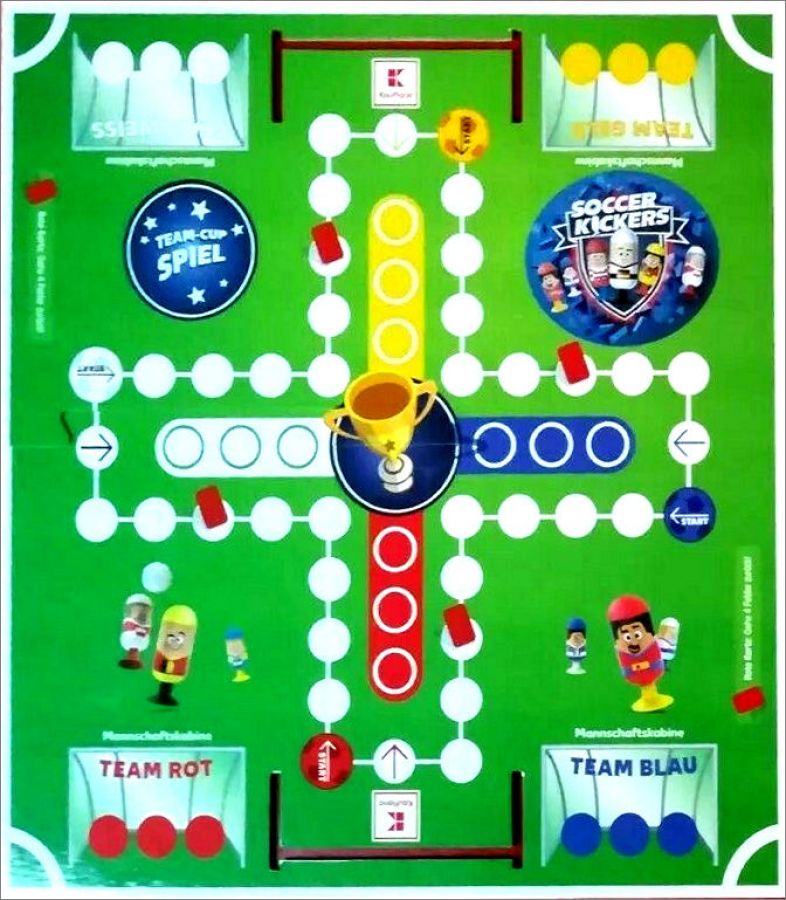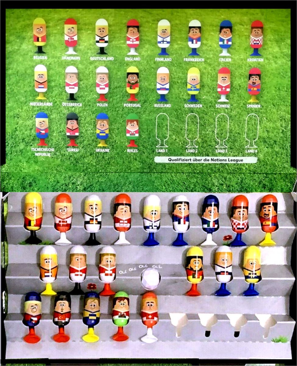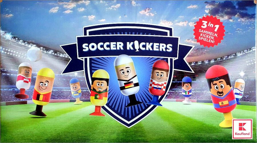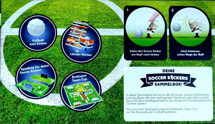 Le collecteur (2.99 €) offre de la place pour 24 kickers de football. Il contient également un terrain de jeu avec deux buts et un ballon sur lequel les Soccer Kickers peuvent jouer leur propre match. Il peut également être transformé en tribune. Le jeu de plateau «Team Cup» est présenté au dos du terrain de jeu et une feuille d'autocollants avec les 16 équipes de la Ligue des Nations est incluse. Si vous avez un double kicker, vous pouvez facilement convertir l'un d'entre eux en un autre en le réenregistrant. Vous pouvez obtenir le collectionneur dans nos succursales.