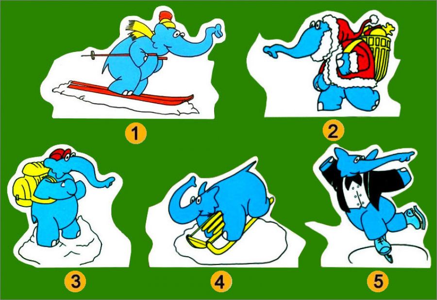 Éléphant Bleu : 1 à 5 ( Suivre la numérotation sur l'image )