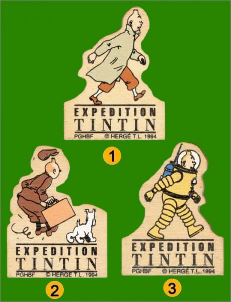Expédition Tintin - 3 Magnets en bois - 1994