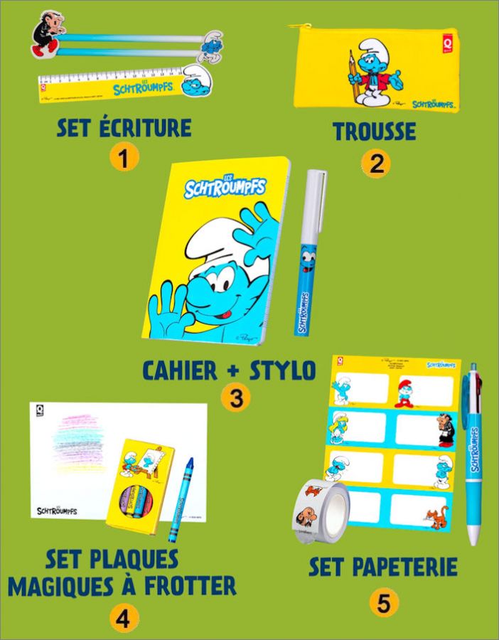 5 fournitures Schtroumpfs = 1 à 5