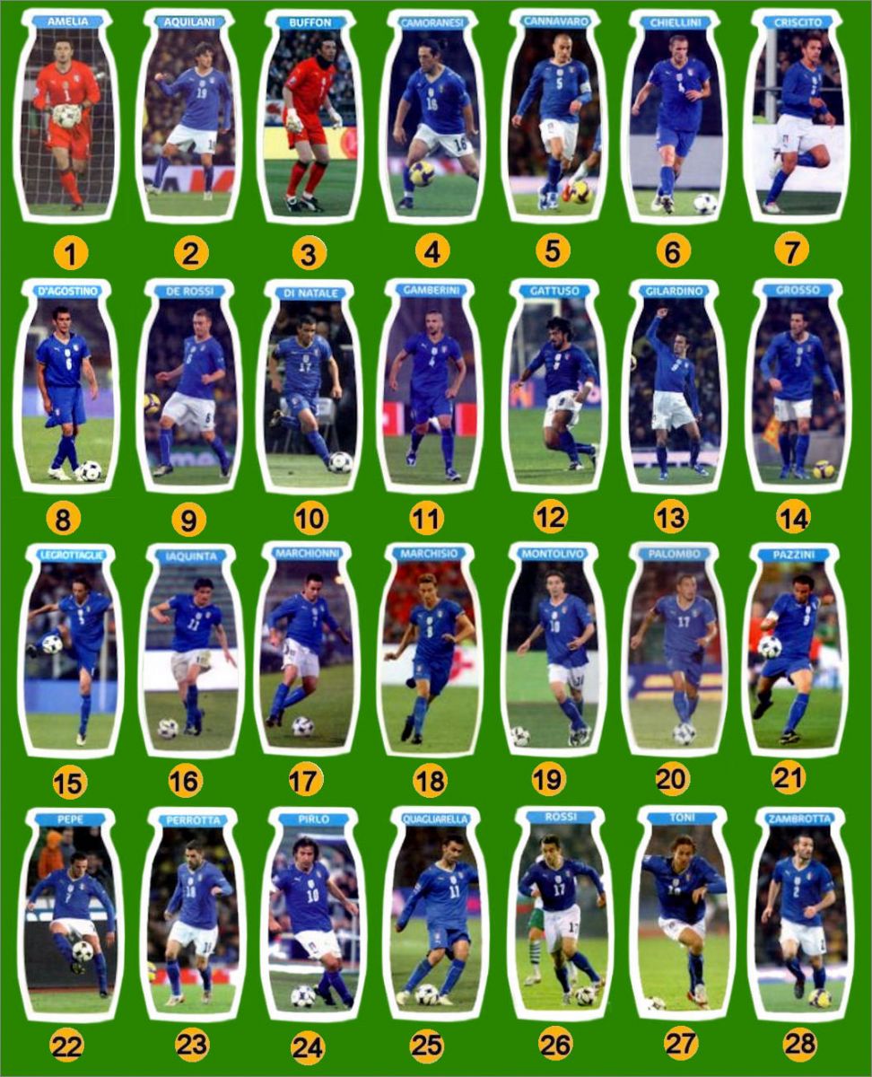 Collection de 28 magnets de l'Équipe Nationale de Football d'Italie