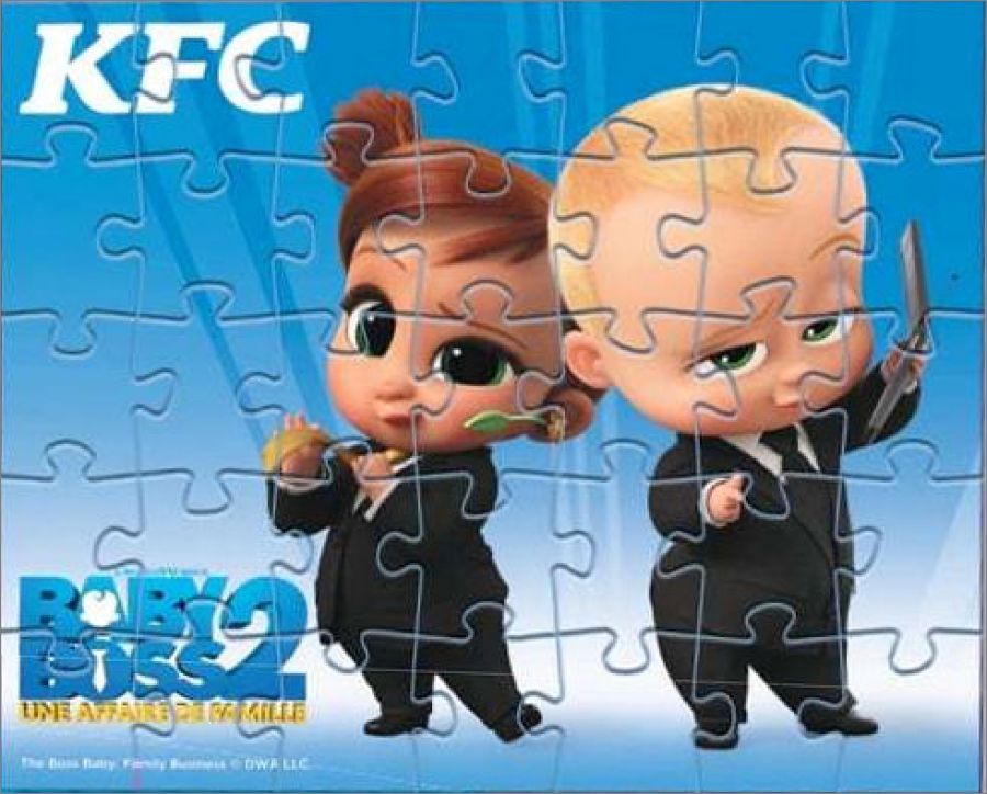 Jusqu'à la mi-novembre 2021, les restaurants KFC accompagne son menu enfant Tasty Box avec 1 des 6 puzzles représentant les personnages du film d'animation "BabyBoss 2 : une affaire de famille"