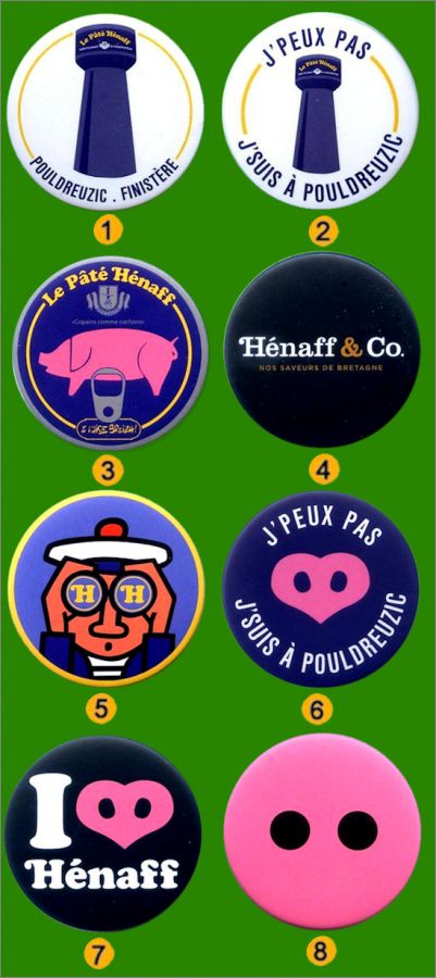 Hénaff : 1 à 8 (suivre la numérotation sur l'image)