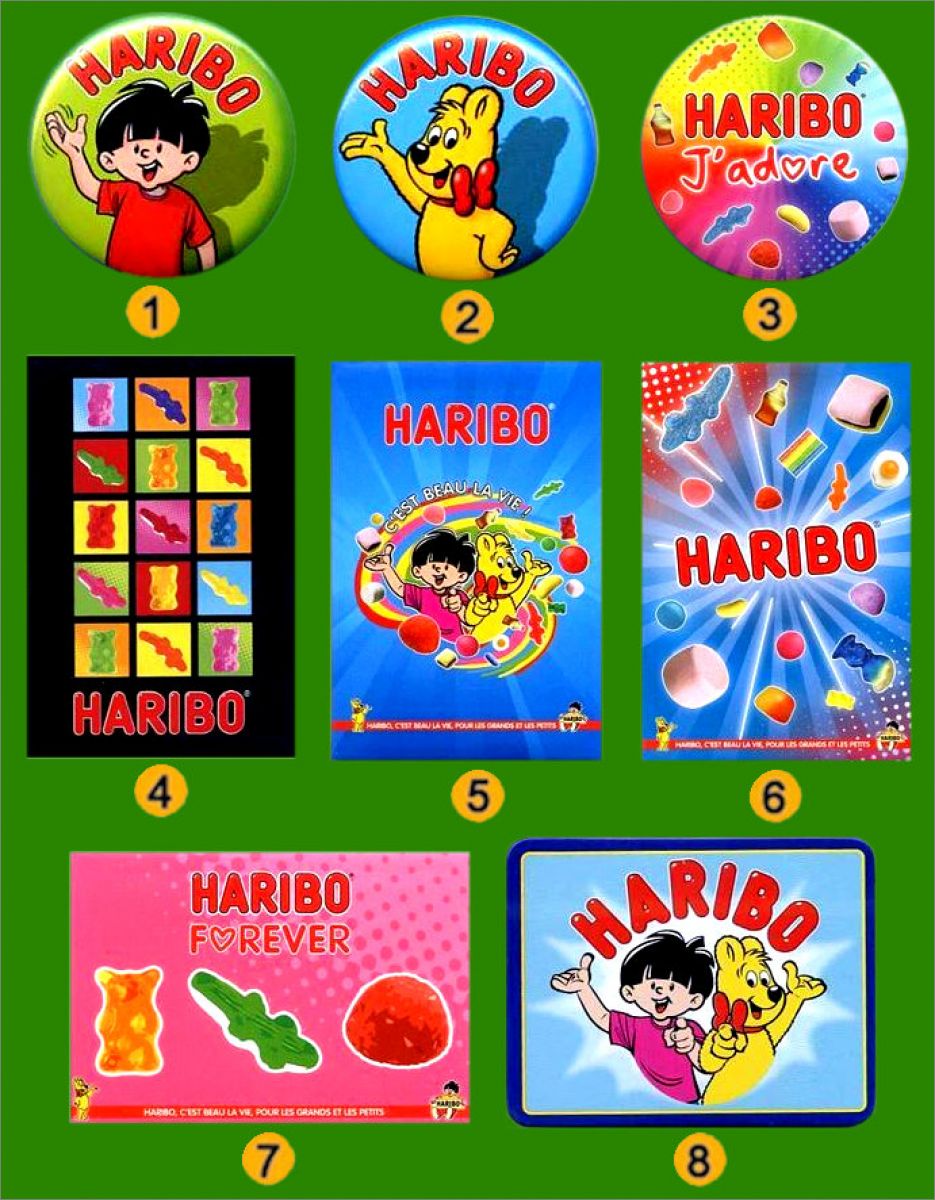 Haribo : 1 à 8 (Suivre la numérotation sur l'image)