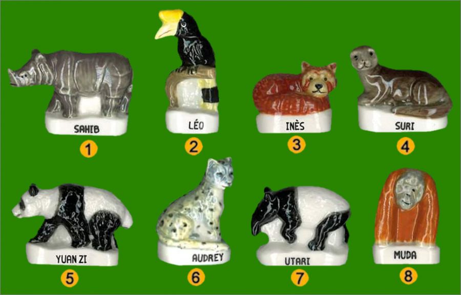 Collection de 8 fèves animaux du Zoo Parc de Beauval