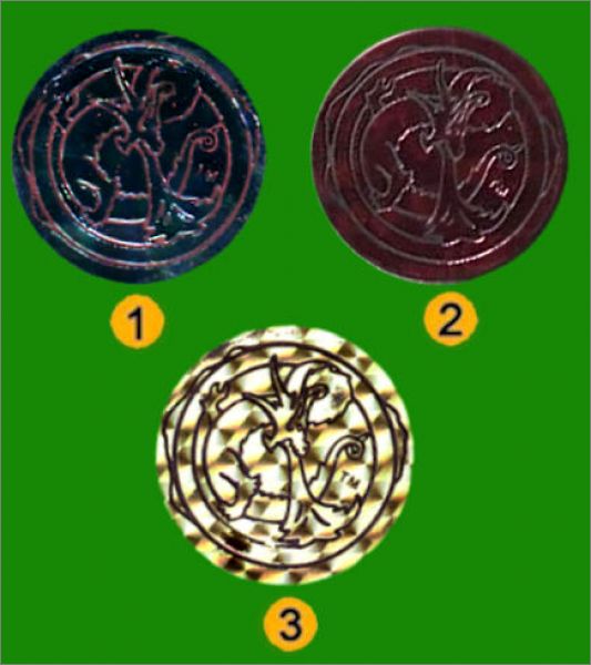 Ces pogs Donjons & Dragons présentent des illustrations des couvertures de divers livres Donjons & Dragons. Au dos de chaque pog, il y a le nom de l'œuvre d'art/du livre et le nom de l'artiste.